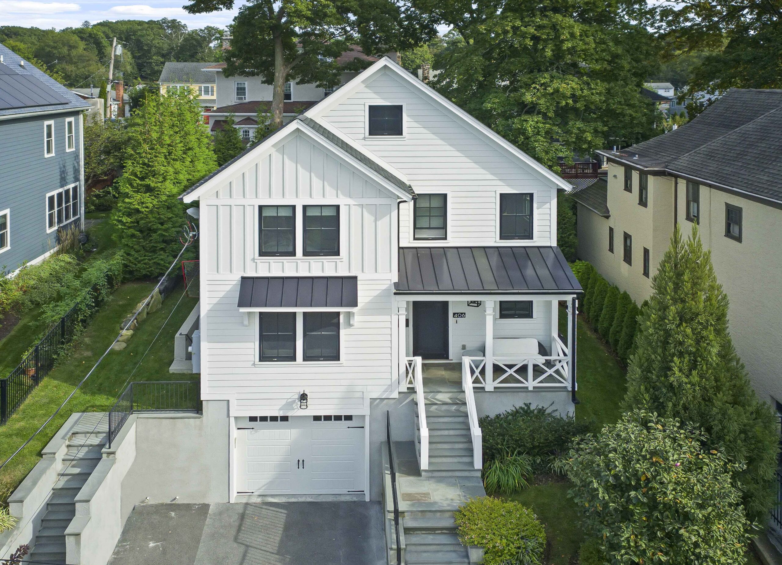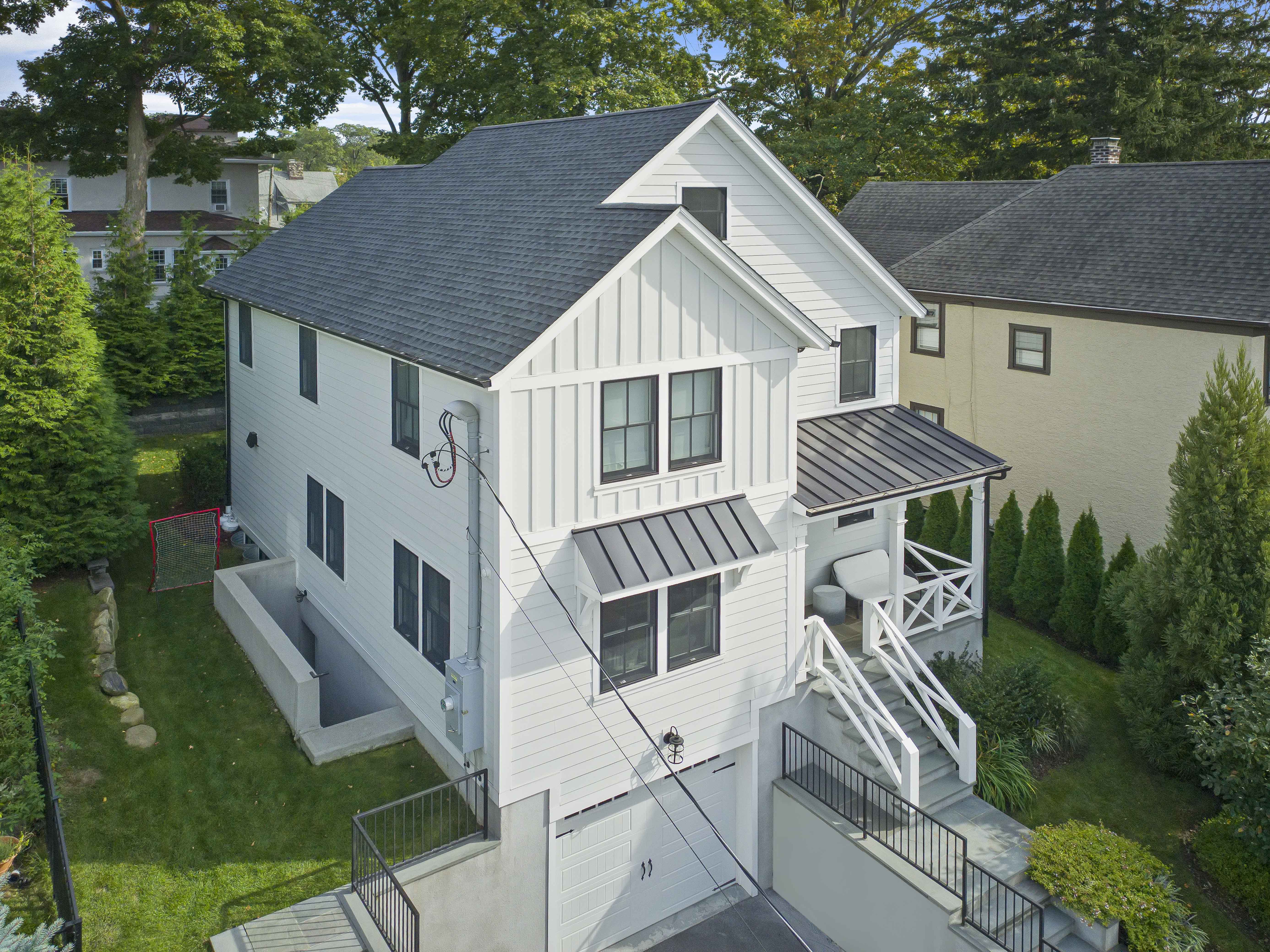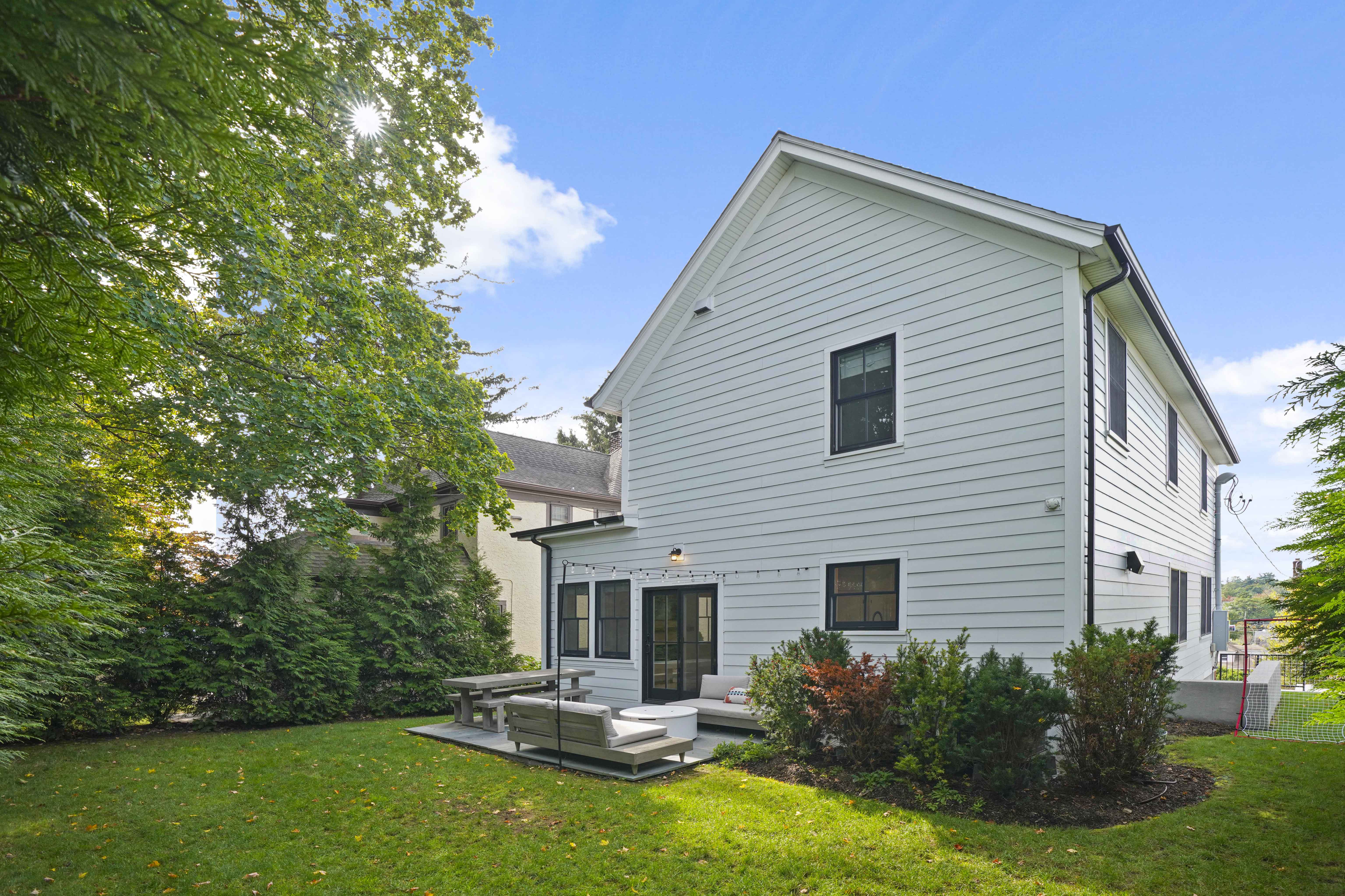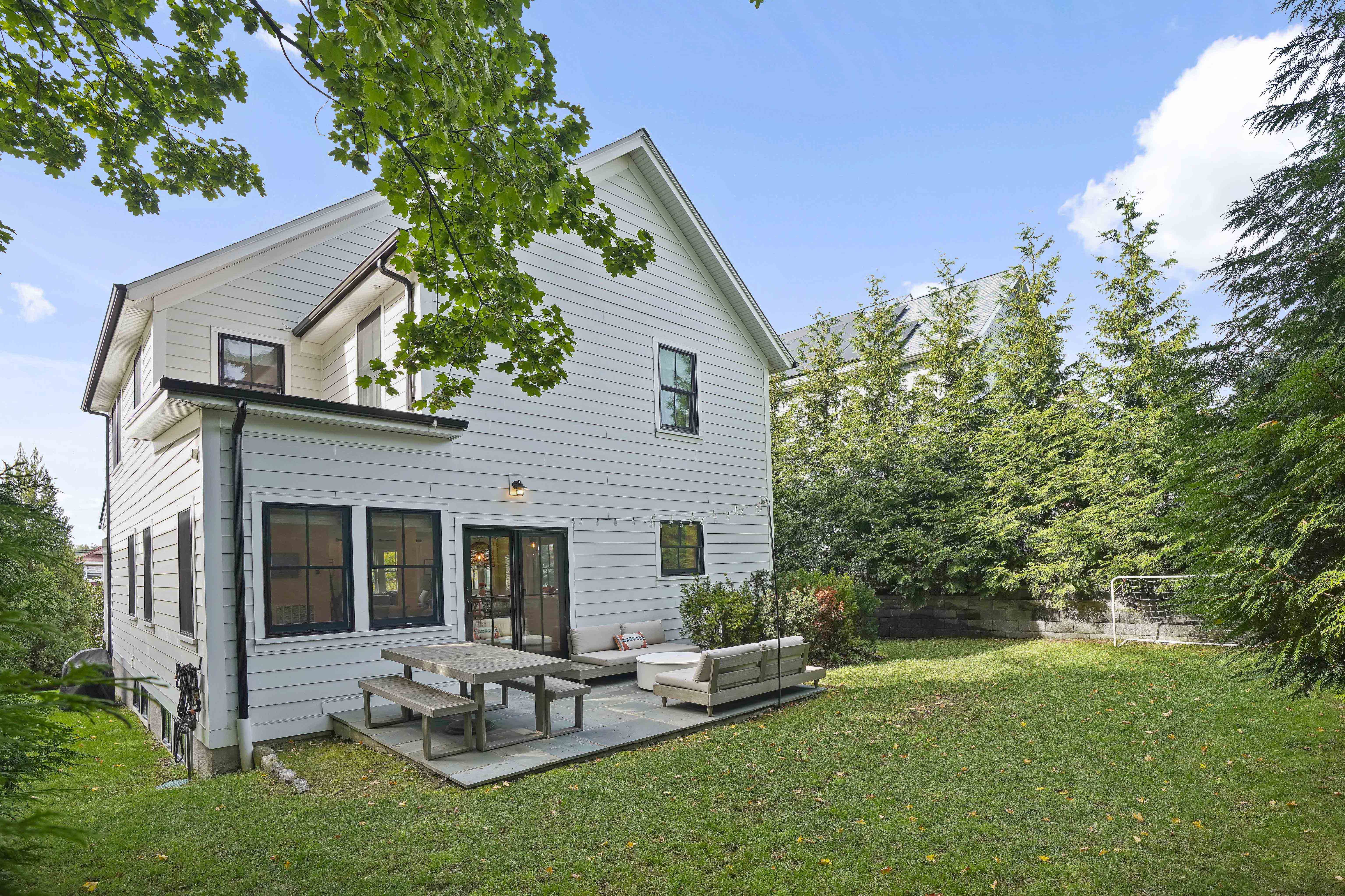 Enjoy contemporary living in historic Pelham with this nearly-new (2020), impeccably-maintained home. Impossible-to-find open floor plan flows seamlessly from the airy foyer into a living and dining area, fantastic kitchen, and family space with glass fireplace and sliding door to bluestone patio and yard. At the heart of it all, an inviting kitchen island with quartz counter draws family and friends together with seating on two sides. Brand new kitchen appliances include Bosch refrigerator, dishwasher, and induction range. Second floor master bedroom with luxurious bath plus three additional generously-sized bedrooms, hall bath, and custom closets throughout. Over 2000 square feet plus an additional 800 square feet in walk-out basement with nine foot ceilings, huge family rec space, laundry room with LG front-loading washer and dryer, and mudroom. Built to be eco-friendly, this home has an electric car charger, is spray foam insulated, and features a high-efficiency, low-cost, electric HVAC system with ERV (energy recovery ventilator) designed for comfort and climate friendliness. Situated in the heart of Pelham, within easy walk of Pelham Metro-North train station, new (2023) Hutchinson Elementary School, and downtown shops and restaurant