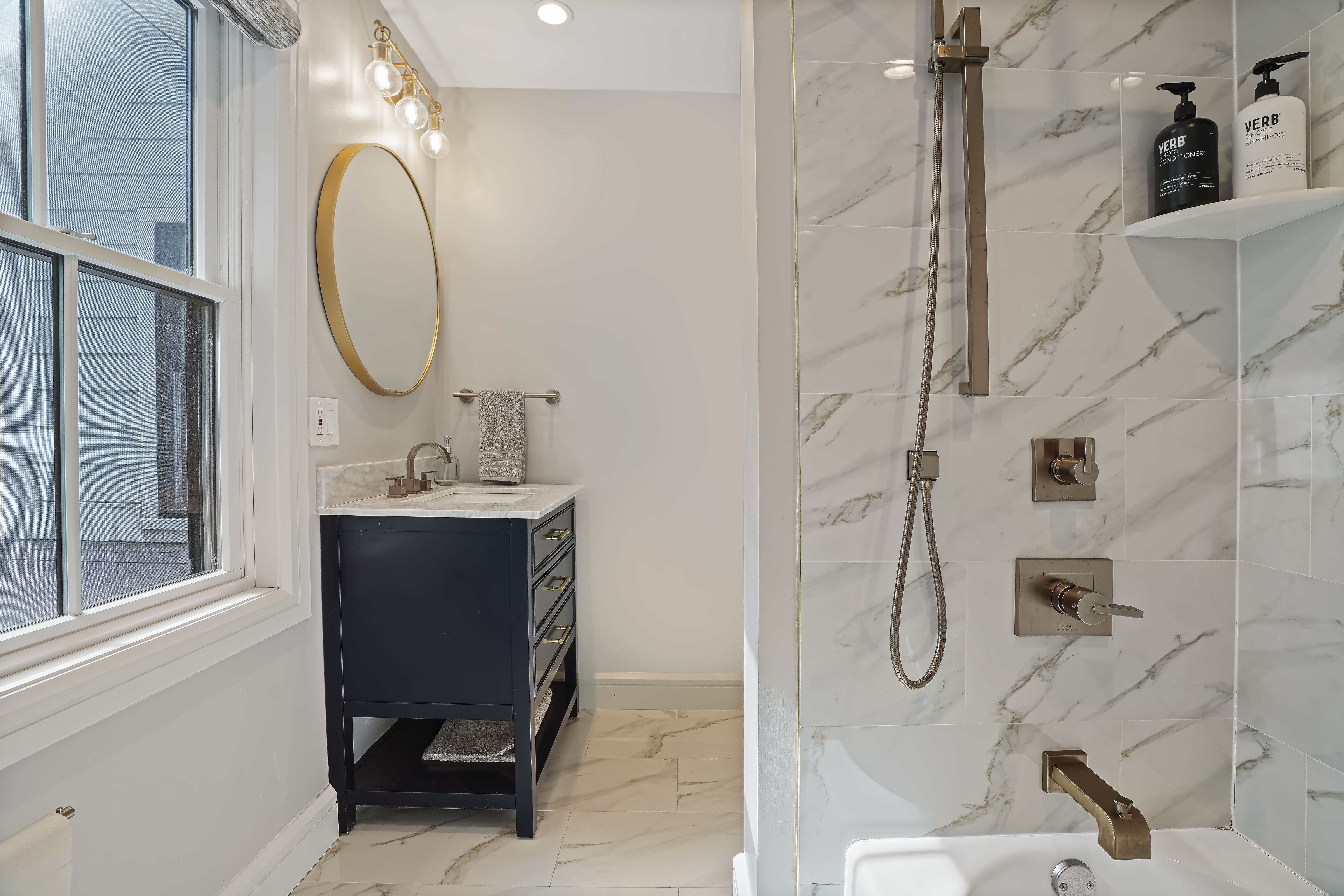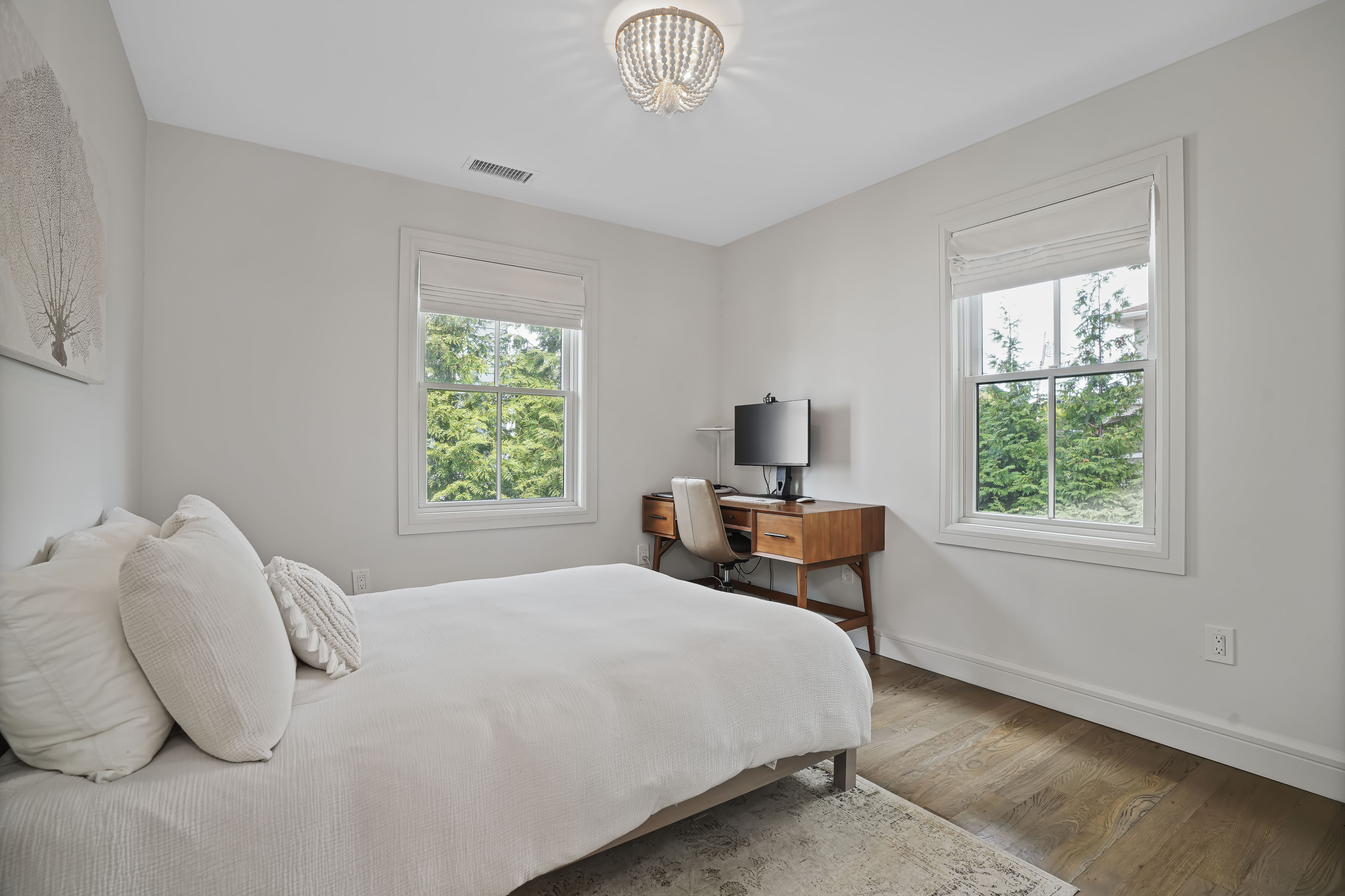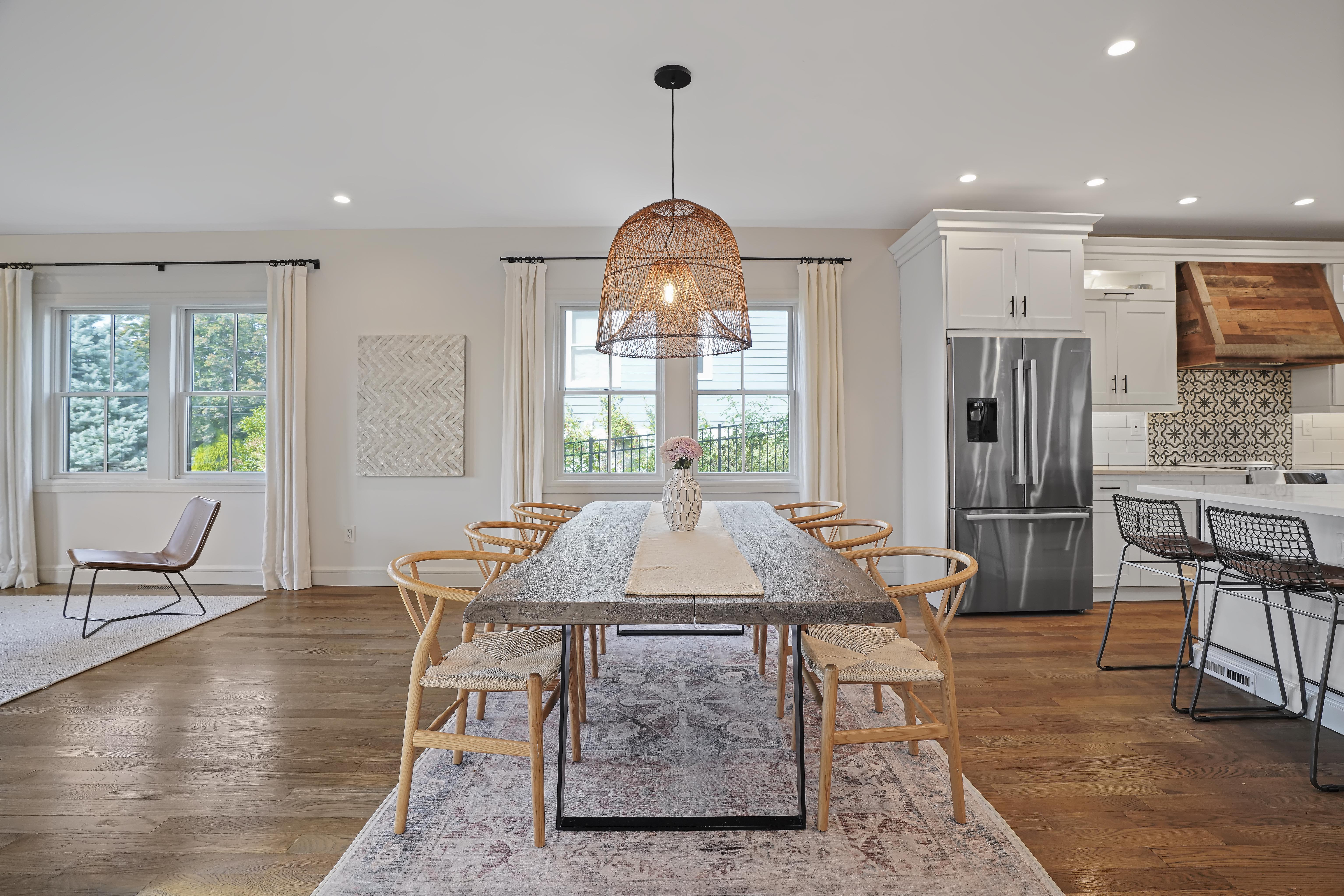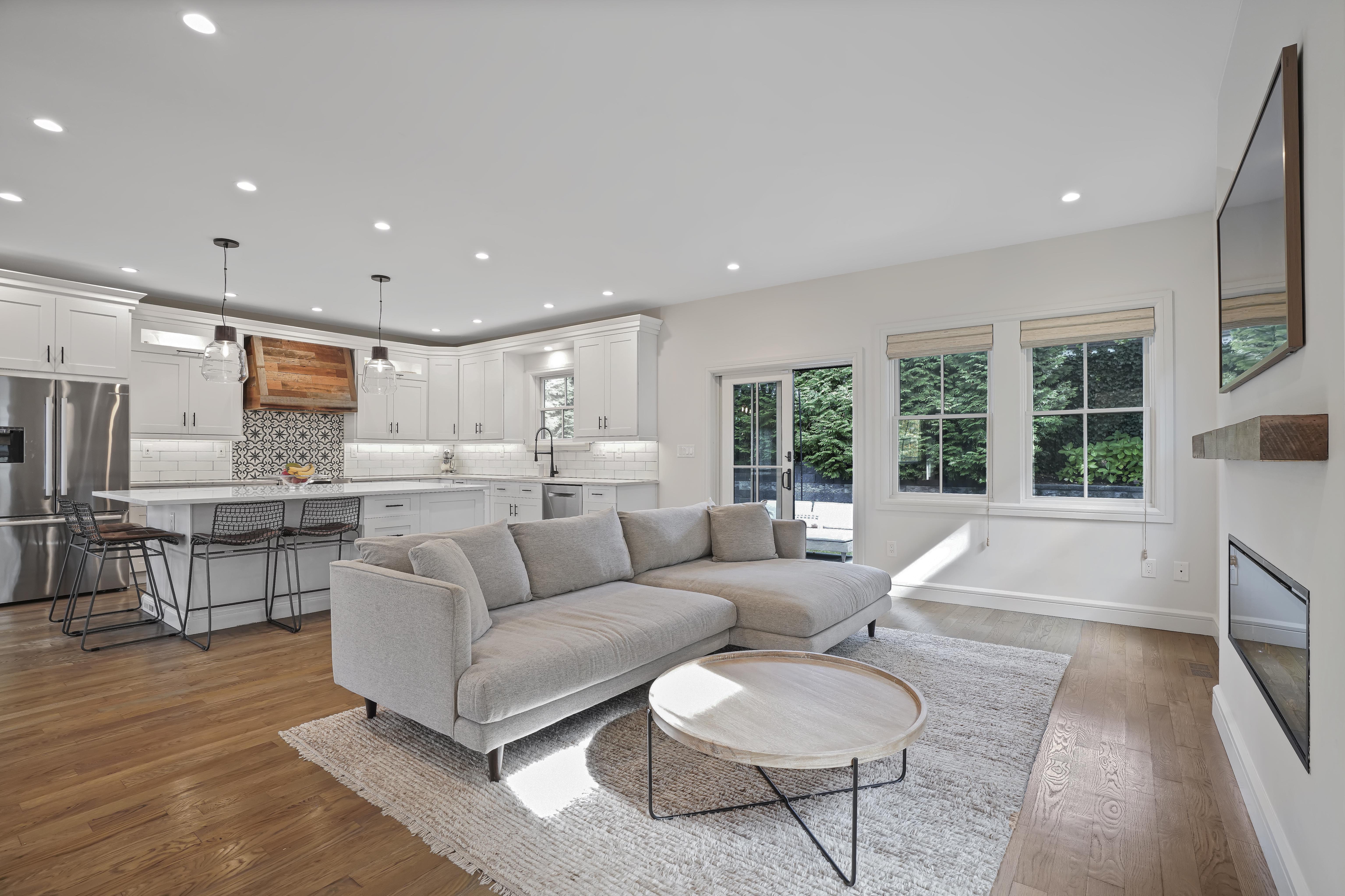 Enjoy contemporary living in historic Pelham with this nearly-new (2020), impeccably-maintained home. Impossible-to-find open floor plan flows seamlessly from the airy foyer into a living and dining area, fantastic kitchen, and family space with glass fireplace and sliding door to bluestone patio and yard. At the heart of it all, an inviting kitchen island with quartz counter draws family and friends together with seating on two sides. Brand new kitchen appliances include Bosch refrigerator, dishwasher, and induction range. Second floor master bedroom with luxurious bath plus three additional generously-sized bedrooms, hall bath, and custom closets throughout. Over 2000 square feet plus an additional 800 square feet in walk-out basement with nine foot ceilings, huge family rec space, laundry room with LG front-loading washer and dryer, and mudroom. Built to be eco-friendly, this home has an electric car charger, is spray foam insulated, and features a high-efficiency, low-cost, electric HVAC system with ERV (energy recovery ventilator) designed for comfort and climate friendliness. Situated in the heart of Pelham, within easy walk of Pelham Metro-North train station, new (2023) Hutchinson Elementary School, and downtown shops and restaurant